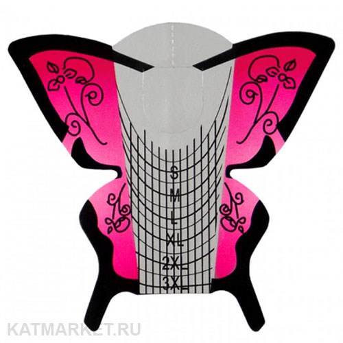 Формы для наращивания Бабочки 20шт, розовые с черной разметкой