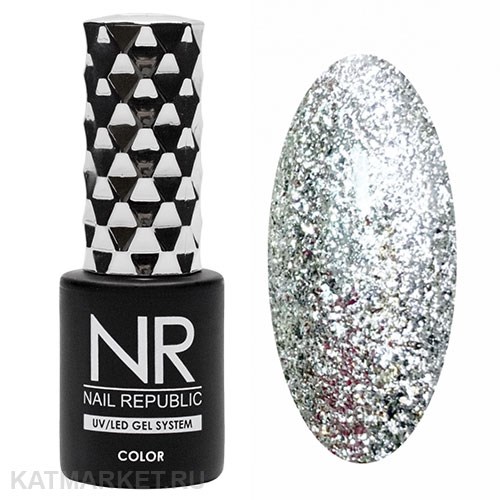 NR 10мл Гель-лак 382 жидкий кристалл, Серебро
