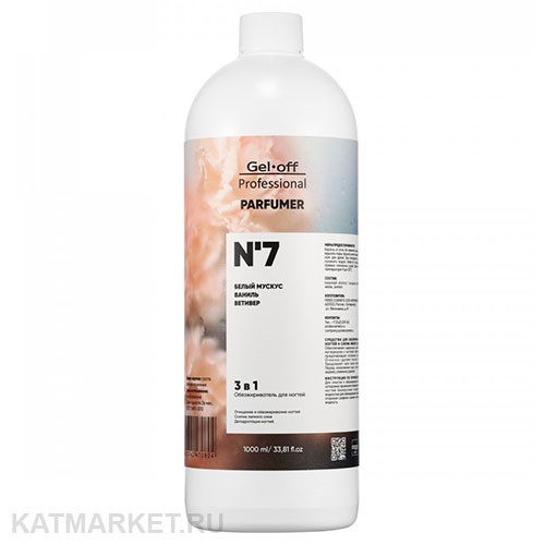 Обезжириватель для ногтей 3 в 1 GEL-OFF PARFUMER № 7 (белый мускус, ваниль, ветивер), 1000 мл.