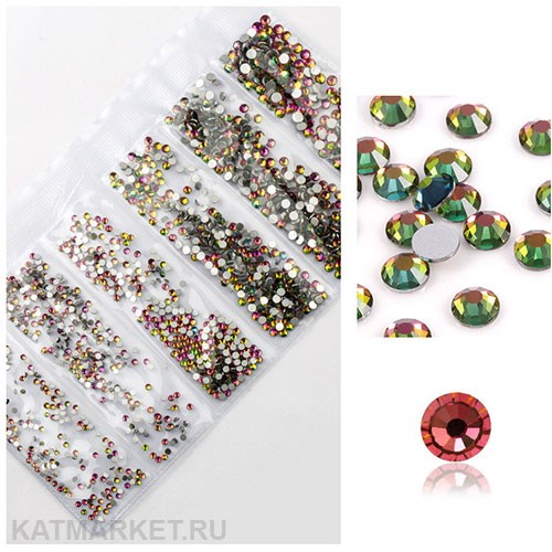 Стразы разных размеров пакет 1600шт, Хамелеон