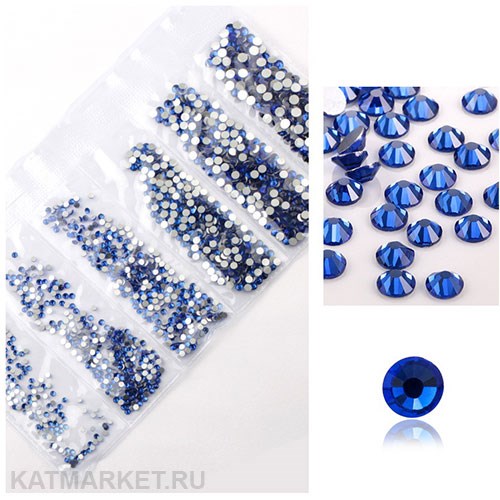 Стразы разных размеров пакет 1600шт, Синие