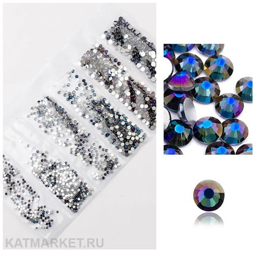 Стразы разных размеров пакет 1600шт, Синие Хамелеон
