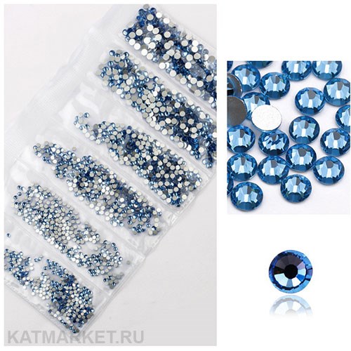 Стразы разных размеров в баночке, Светло-Голубые
