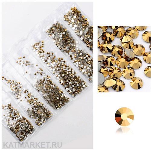 Стразы разных размеров в баночке, Золото металлик
